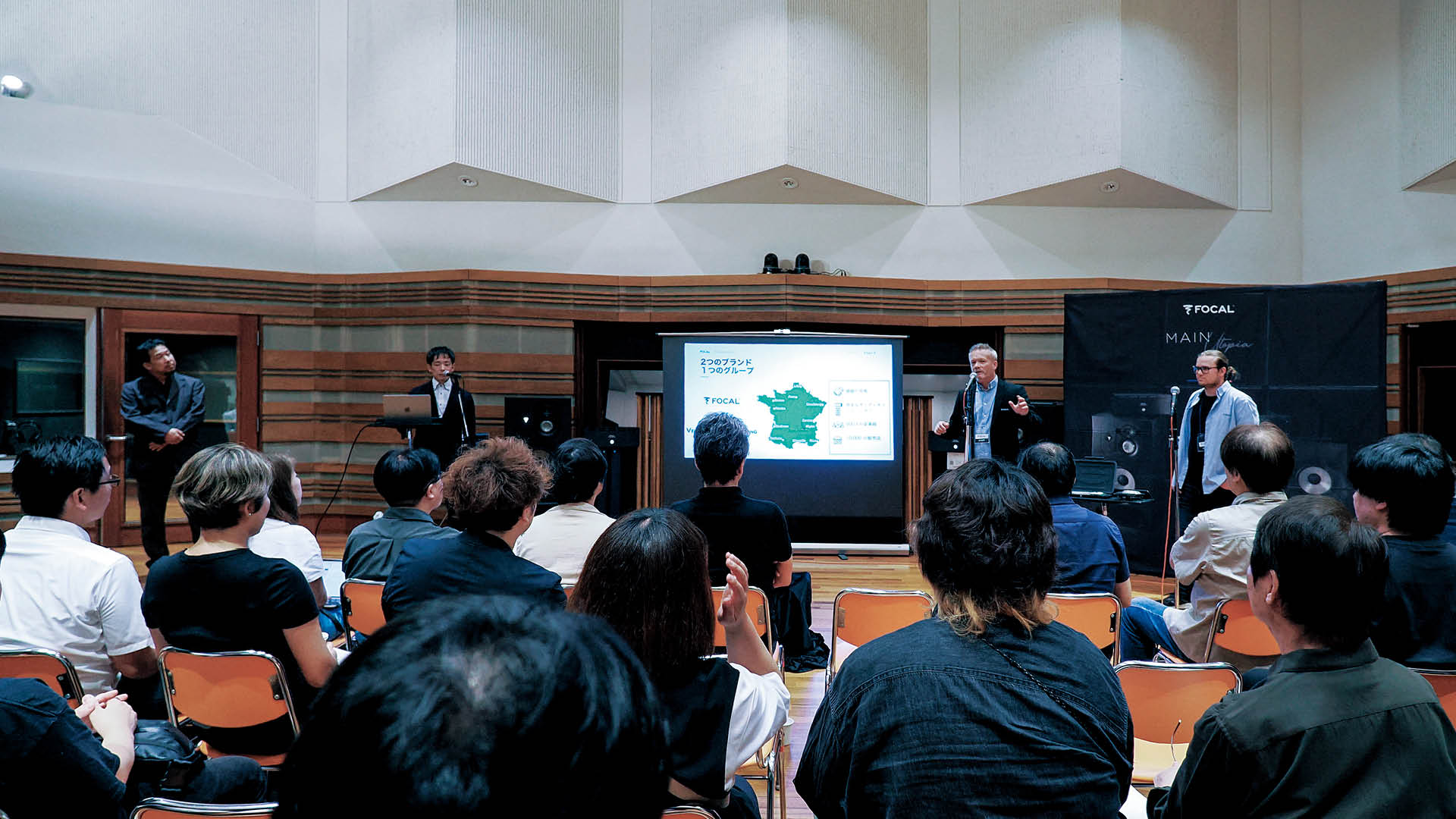 Focalが新たな一歩を踏み出した。サウンドエンジニアリングの世界ではニアフィールドのモニターを中心として、実績も歴史も積み上げてきた仏 Focal Professional社。実際のところは、カーオーディオやホームオーディオ、インウォールのスピーカーなどエントリーからハイエンドまで幅広いラインナップを誇る。そして、その中でも一切妥協のない、限界のないフラッグシップモデルに与えられる名称が「Utopia」だ。そのUtopiaの名前を冠した新たな製品が登場した、「Utopia Main 112 / 212」である。今回はビクタースタジオで行われた日本初上陸となるイベントにフランスよりFOCAL-JMLAB Pro部門セールス・マネージャーのVincent Moreuille 氏、プロダクト・マネージャーのSylvain Gondinet 氏が来日、Focalの新たなフェイズを切り拓くUtopia Main 112 / 212を国内のトップエンジニアに向けてプレゼンテーションした。