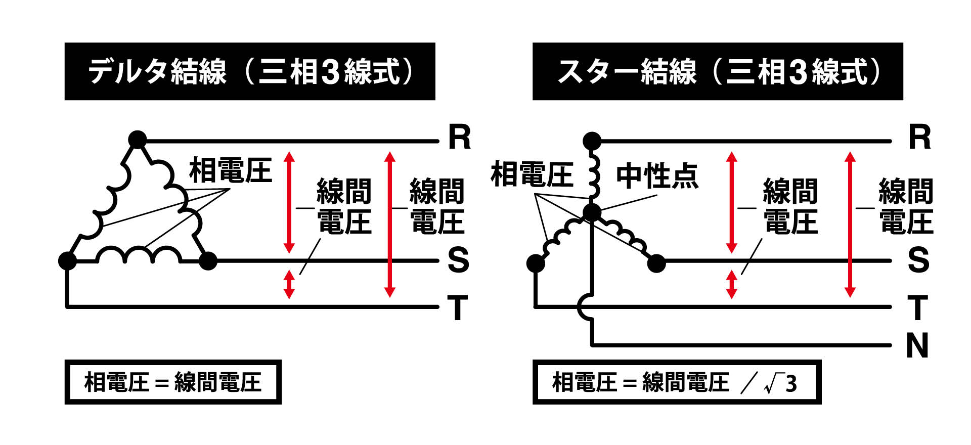 三相交流の変圧方式として、デルタ結線とY(スター)結線があります。欧米の家庭用電源はデルターYの変圧機により降圧され、三相4線方式で各家庭内へと引き込まれています。欧米でも実際に家庭内で利用される電源は単相交流で、三相4線のうち中性線と活性線のうち1本を使い単相交流を家庭内へと引き込んでいる仕組みです。