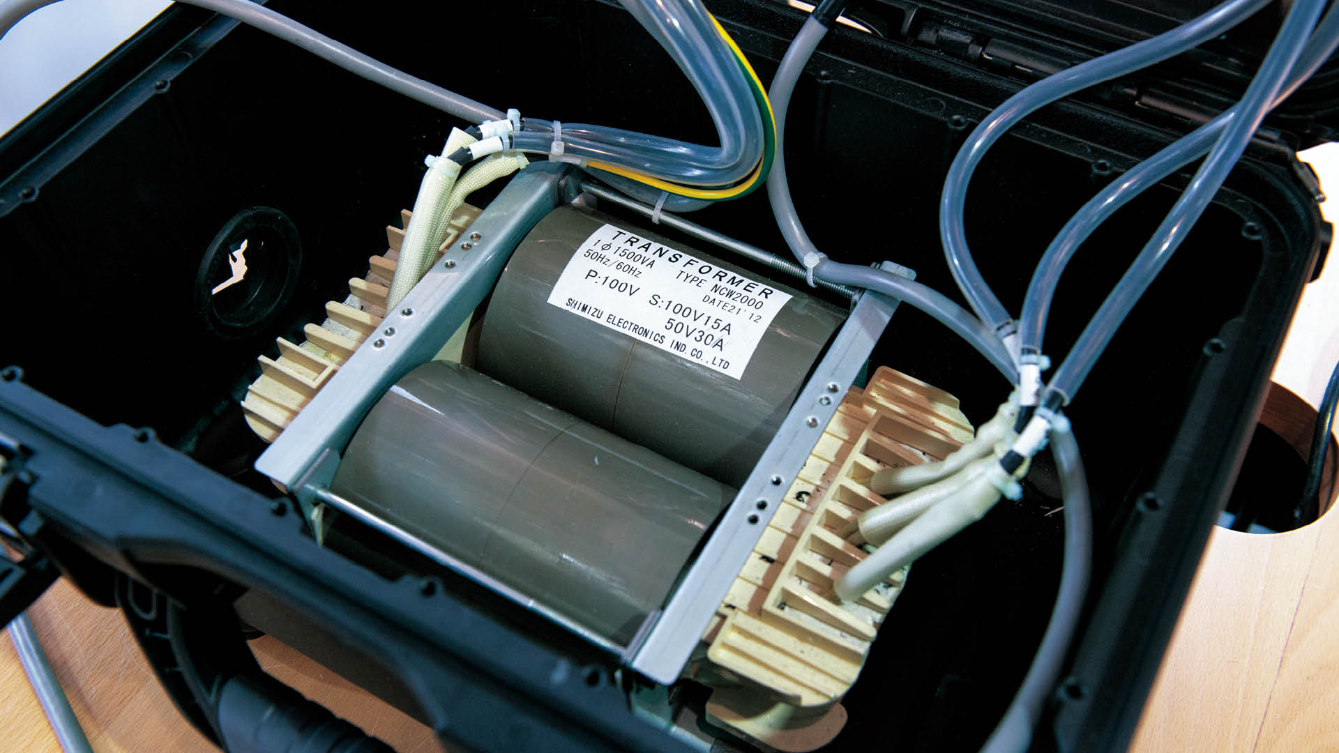 そこで、日本国内でも海外と同様の電源環境を手に入れるために開発されたのが、シンテック ノイズ低減アイソレートトランスです。Product Insideのコーナーなのに、ここまで語って全くプロダクトが登場してこない。編集サイドもさぞかしハラハラしたでしょう。