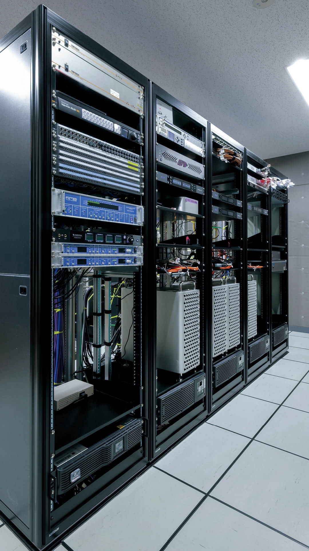 DAWが動作するPCには、10GbEでSynology RS2423+というNASが接続されている。4TBのHDDが12台搭載され、48TBの容量を持つ仕様である。外部からデータを持ち込みする作業が多いこともあり、共有のデータストレージとしてこの製品が選択された。エンタープライズ向けの製品ではないため、Synology RS2432+上から直接のPro Tools作業は推奨されないが、10GbE接続ということもありコピーも高速に行うことができる設計が行われている。